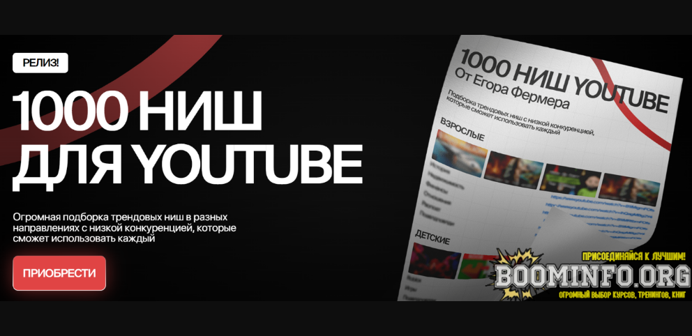 [Егор Фермер] 1000 ниш для Youtube (2025) Огромная подборка трендовых ниш в разных направлениях с низкой конкуренцией, которые сможет использовать каждый