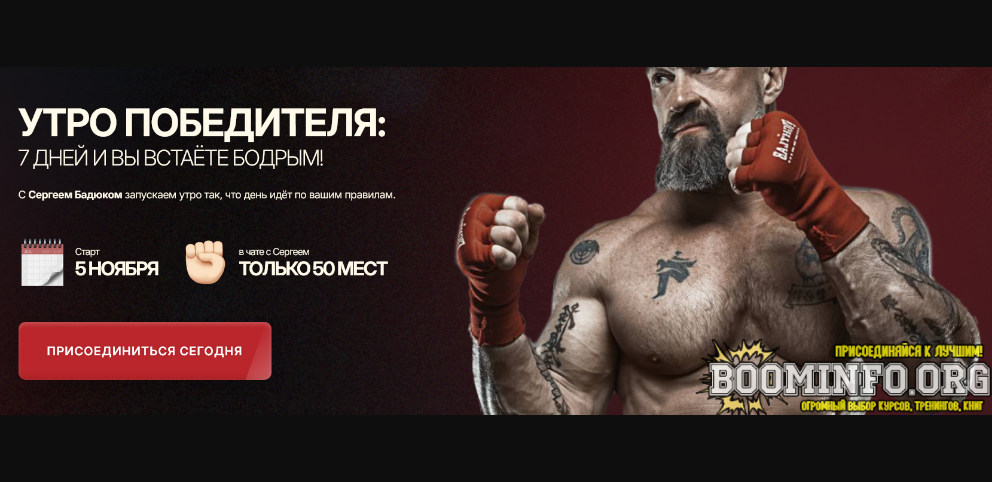 - Бонусы: чек-лист «Утренний протокол победителя», аудио мотивация от Сергея