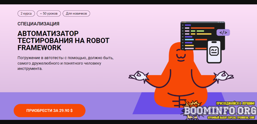 - В курсах используются библиотеки Selenium для веба и Appium для мобилок – они очень популярны и за пределами Robot Framework, будучи доступными на самых востребованных языках программирования. Даже если в итоге Robot Framework не пригодится вам в работе, знания отсюда сильно помогут с переходом на другой набор технологий.