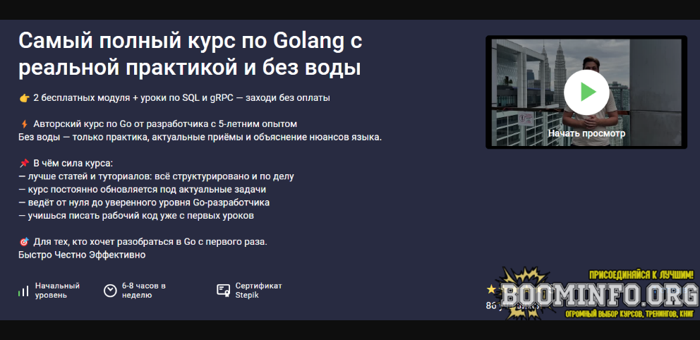 Этот курс — кратчайший путь от полного новичка до разработчика, готового проходить собеседования и писать реальные сервисы на Go. Его цель — избавить вас от хаоса из десятков статей, видео и устаревших туториалов. Вы получите только нужное, без воды, с чёткой структурой и личным опытом автора.